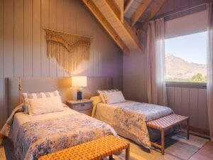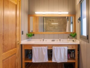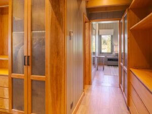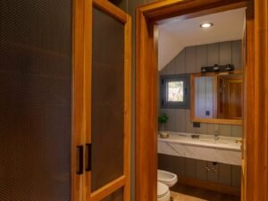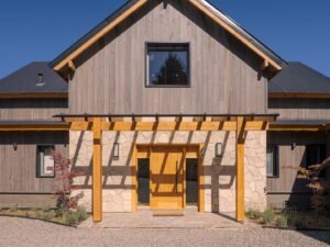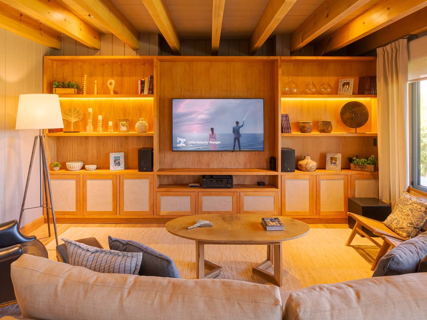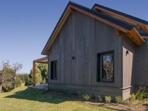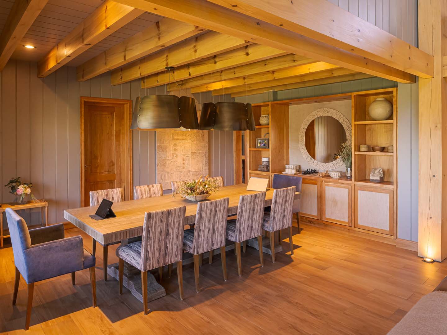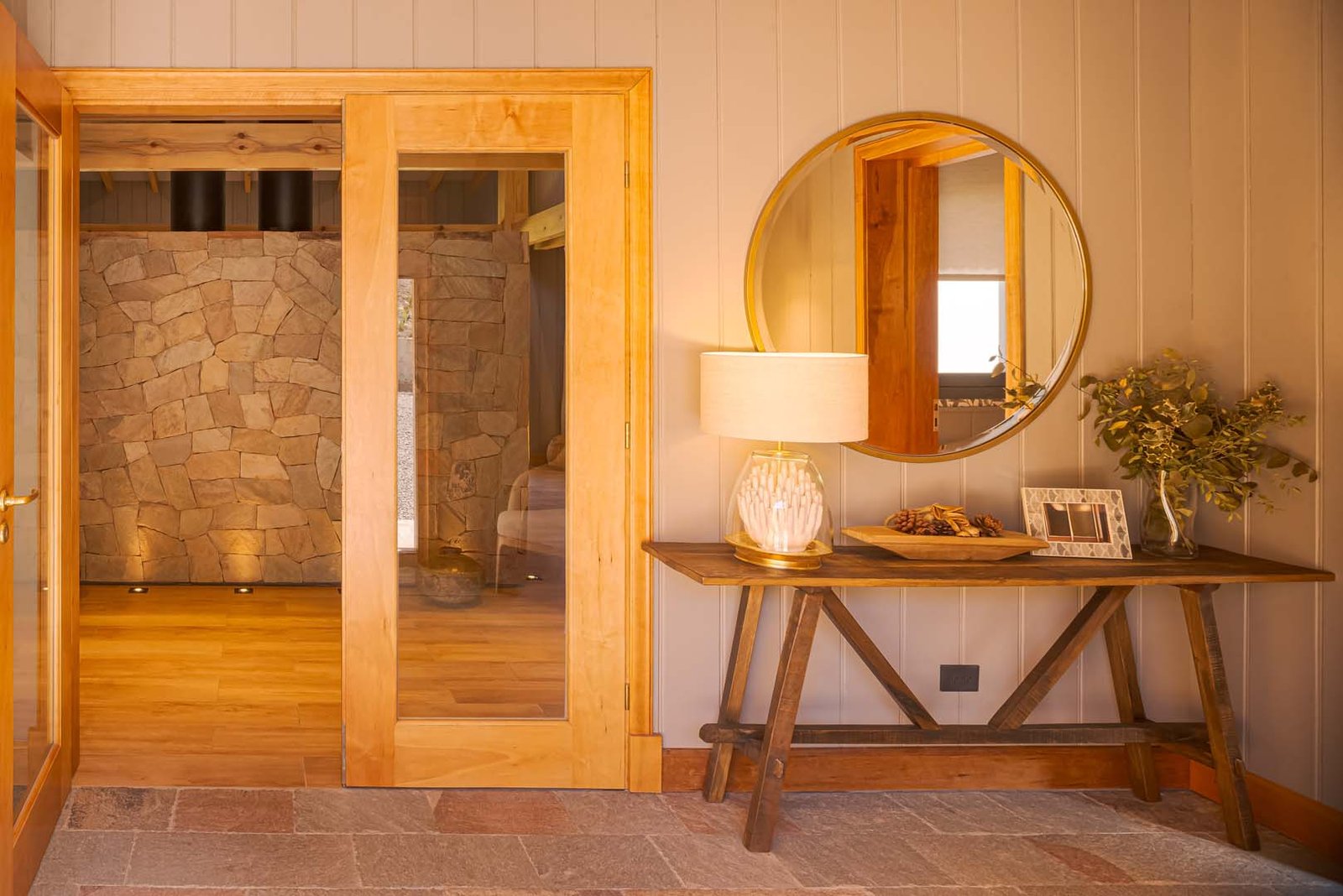 Revestimiento en madera de pino añejada y protegido con aceite de Teca.