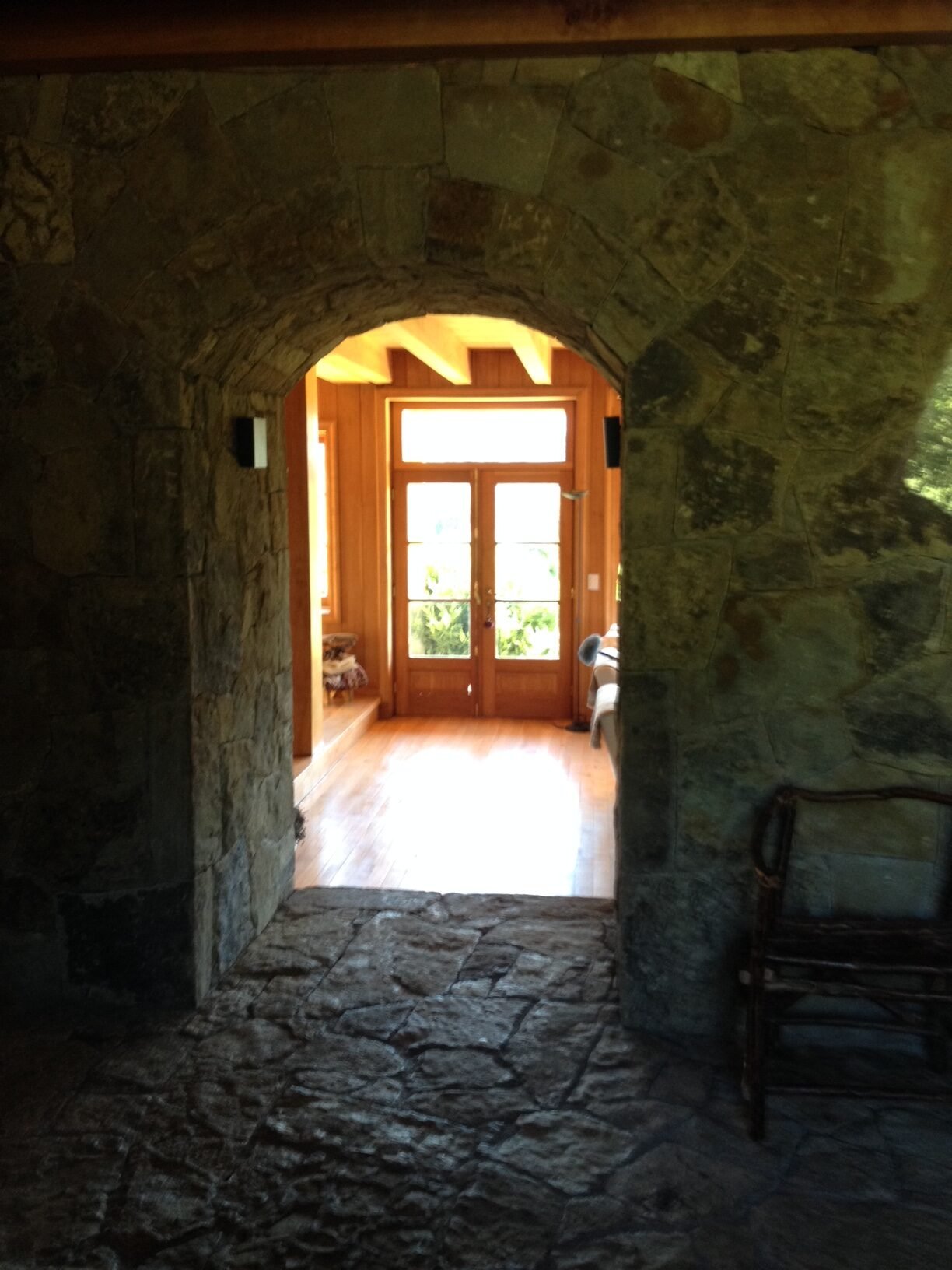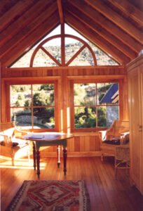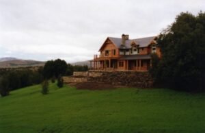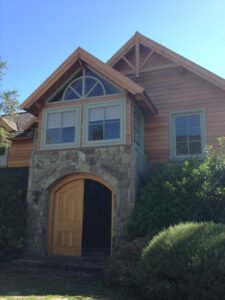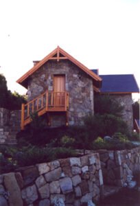Finalmente, la casa se realizó con piedra y madera. Esta experiencia en honor al Arquitecto y Parquista Juan Grimm, resultó ganadora en un concurso de Arquitectura.